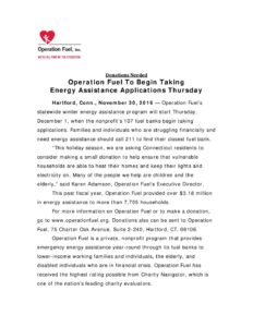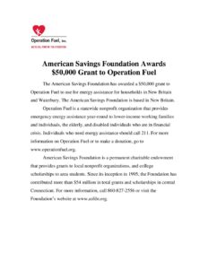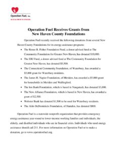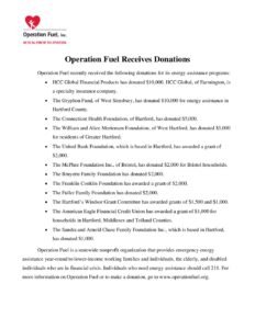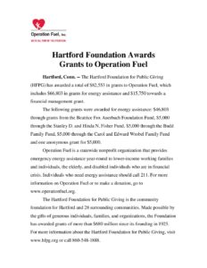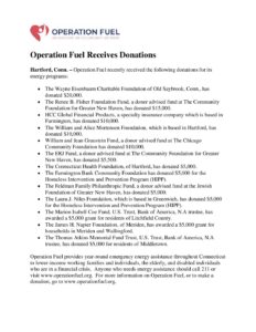 Operation Fuel Hartford Foundation Press Release