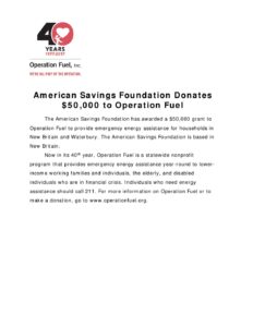 Operation Fuel American Savings Foundation Donation News Release 2018