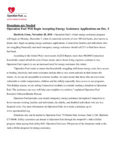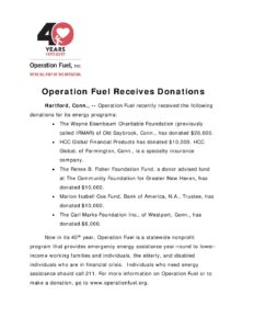 Operation Fuel Hartford Foundation Donations News Release 2018