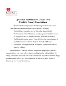 Operation Fuel Fairfield County Donations News Release 2018