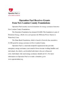 Operation Fuel New London County Donations News Release 2018