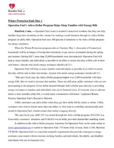 Operation Fuel Winter Energy Assistance Program 2018 News Release