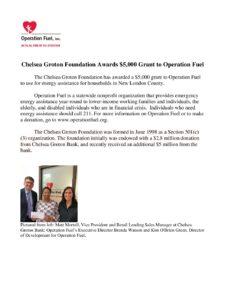 Operation Fuel Chelsea Groton Foundation Donation News Release 2018